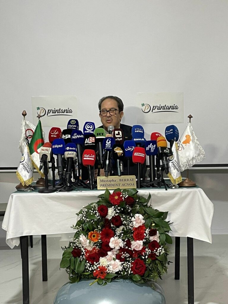 تحت أضواء النيون في فندق كبير في الجزائر العاصمة، يفتتح مصطفى بيراف الحفل.